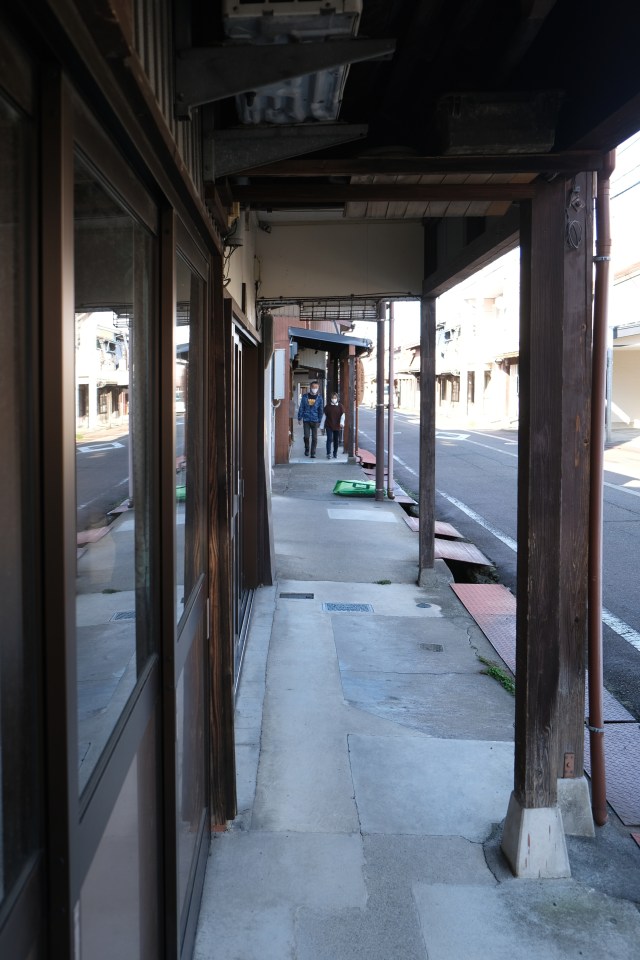 関由有子さんの説明によると、雁木は各家の所有者が維持管理していますが、雁木部分は固定資産税が一部免除されます。これは、現代の商店街のように、商店が一体となって所有・維持しているアーケード通りとは異なります。関さんは高田で活動されている建築家で、高田の町家を得意としています。高田の建築や街の構造を知るには、彼女のところに行くべきです。